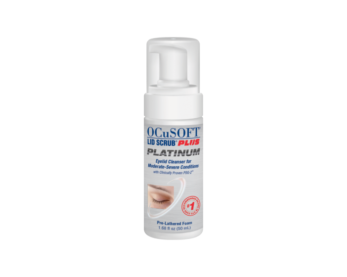 OcuSoft Platinum supports eyelid hygiene with advanced cleansing and microbial control.